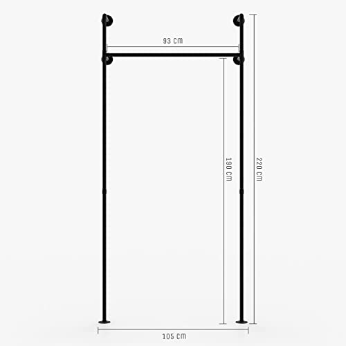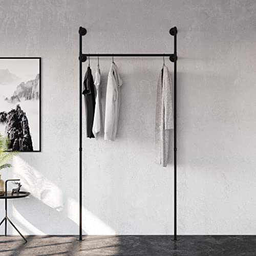 pamo kledingstang industrieel loft-design – kledingrek voor inloopkast wand I slaapkamer kledingrek van zwarte stabiele…