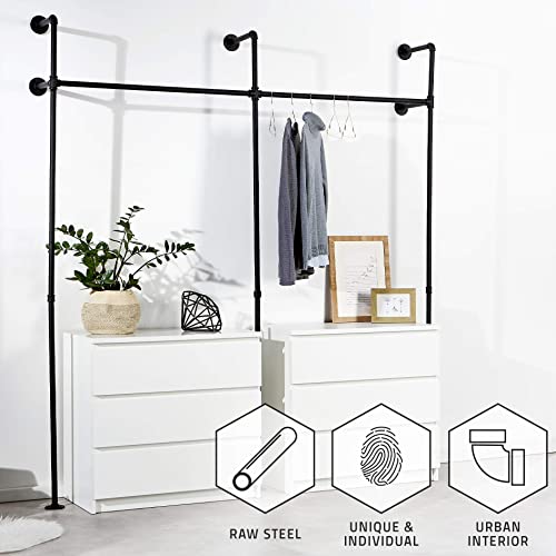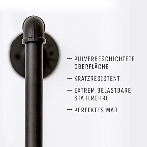 STABIEL EN OPVALLEND – De massieve stalen buizen en smeedbare gietijzeren fittingen hebben een matzwarte coating en zijn daarom zeer krasbestendig. De sterke metalen buizen zijn extreem robuust, waardoor het kastsysteem niet gaat doorbuigen