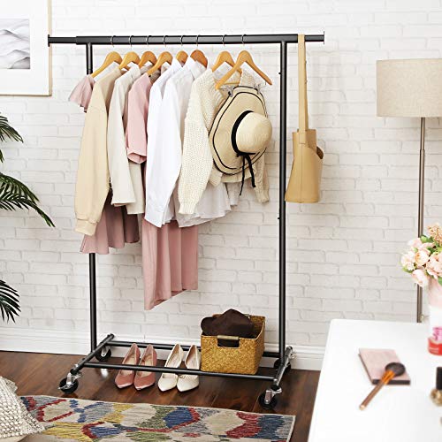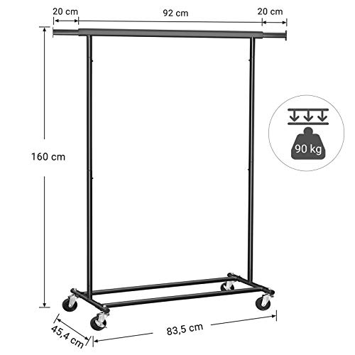 SONGMICS heavy duty kledingrek, kapstok op wielen, belastbaar tot 90 kg, met uittrekbare kledingroede, opklapbaar…