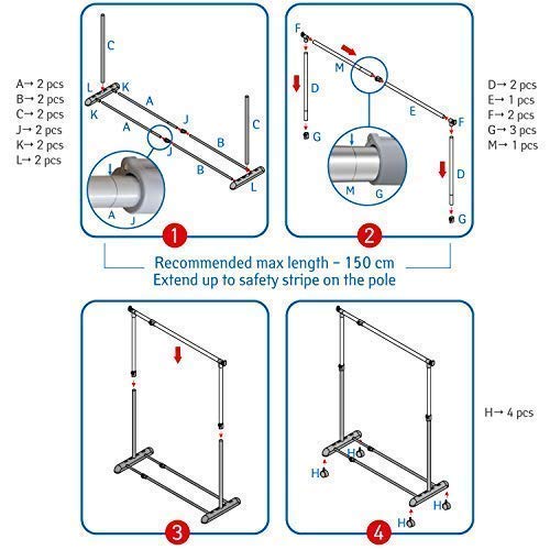 Met 4 versterkte en het 360 ° draaibare wielen (waarvan 2 vergrendelbaar) kunt u de garderobe-staander gemakkelijk verplaatsen en stabiel houden.