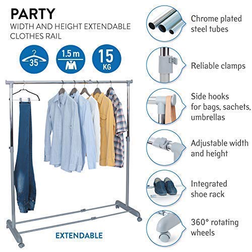 Tatkraft Party Verrijdbaar Kledingrek Op Wielen – Stevig Mobiel Verstelbaar Kleren Rek Op Wielen – Kledingstandaard…