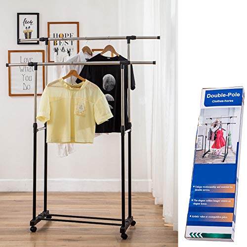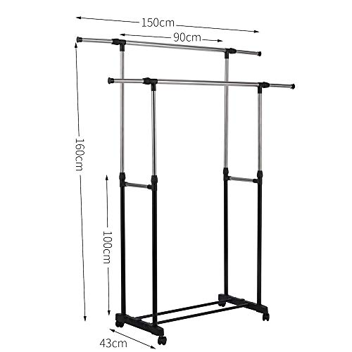 – Verrijdbaar mobiel dubbel kledingrek met 4 wieltjes.