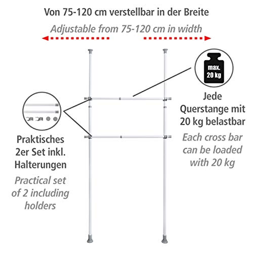 WENKO Herkules Kledingstang, set van 2, telescoopstang, staal, 3 x 75-120 x 3 cm, wit