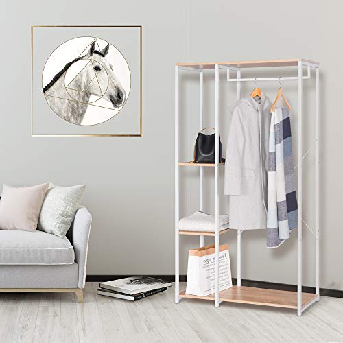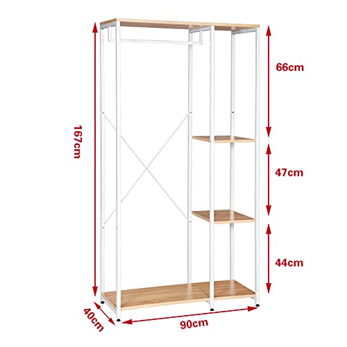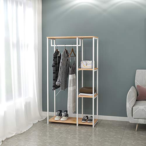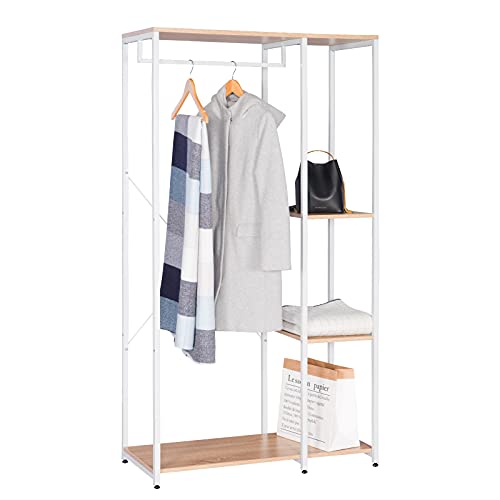WOLTU SR0047whe kapstok industrieel 90x40x167cm in spaanplaat en stalen,kledingstang Kledingrek met schoenenrek,Wit…