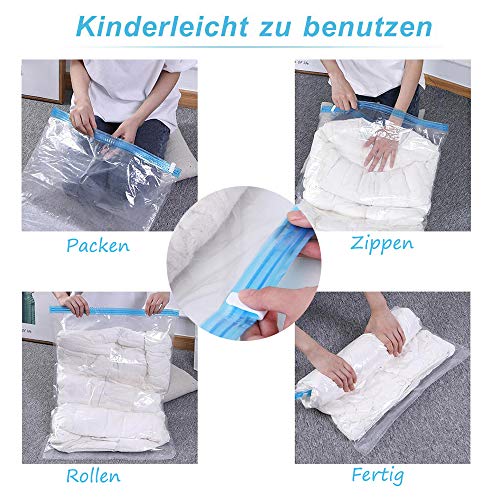 Verschillende maten: 13 compressiezakken, 4 stuks, 50 x 70 cm, 4 stuks 40 x 60 cm, 5 stuks 32 x 39 cm, de zakken zijn herbruikbaar en kunnen op elke vakantie opnieuw worden gebruikt en zijn daardoor zeer milieuvriendelijk.