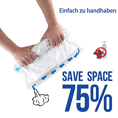 Ruimte besparen: onze vacuümzakken verhogen veel ruimte voor je koffer, rugzak of kastruimte. De transparante vacuümzakken maken het eenvoudig om de gewenste kleding te vinden en je hoeft je geen zorgen te maken over de rommel.