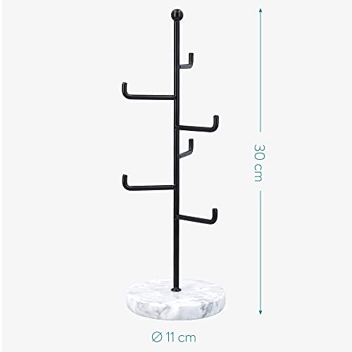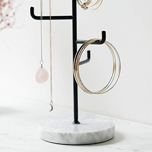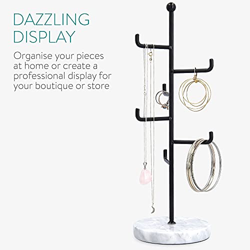 Navaris sieradenhouder metaal en marmer – Sieradenboom zwart met marmeren voet – Handig ophangen van sieraden, kettingen…