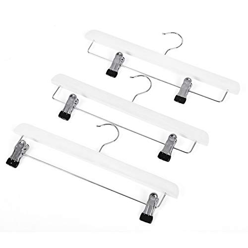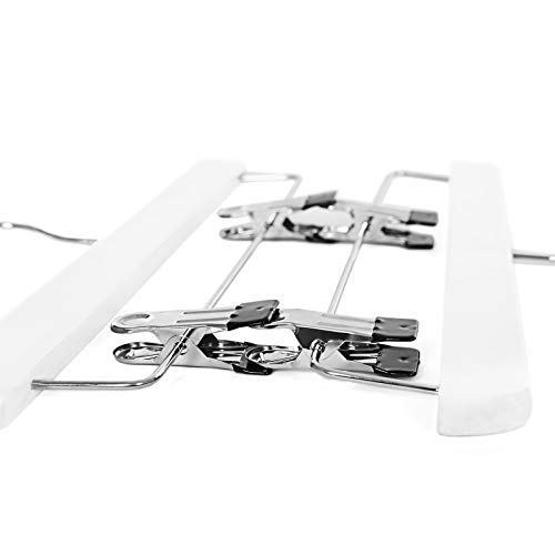 ADJUSTABLE CLAMPS: De twee klemmen kunnen heen en weer worden bewogen in de breedte (max. tot 31 cm) zodat de hanger kan worden aangepast aan de breedte van het kledingstuk en er smalle voorwerpen zoals sjaals aan kunnen worden opgehangen