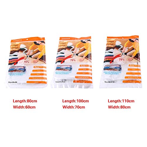 Ze zijn gemaakt van een hoogwaardige PET-zak, met rits en afsluitklep, ze hebben goede eigenschappen van uitstekende afwerking en uitstekende kwaliteit, zodat ze niet lekken na het sluiten ervan. Perfect voor het opbergen van uw kleding, dekbedden, handdoeken, dekens of kussens. Het kan u helpen om veel ruimte in uw huiskast te besparen en u kunt meer spullen in uw bagage meenemen. Het kan uw kleding, dekens en kussens beschermen om veilig te worden opgeborgen tegen het risico van bacteriën, schimmel, schimmel, groei van micro-organismen of andere schadelijke factoren. Het is heel gemakkelijk en gemakkelijk te gebruiken, doe gewoon al je spullen in de zak, rits de zak dicht en open de dop van de afsluitklep, sluit de vacuümluchtpomp aan (niet inbegrepen), pers alle lucht eruit en sluit de cap-dat is ok! U kunt ook een handpomp gebruiken om het gemakkelijk te maken om uw spullen tijdens het reizen opnieuw in te pakken. Milieuvriendelijk en herbruikbaar. Onze vacuümzak is geen wegwerpproduct, dus het kan niet alleen ruimte besparen, maar ook geld en milieu besparen. En het is een duurzame tas die vele malen kan worden hergebruikt.