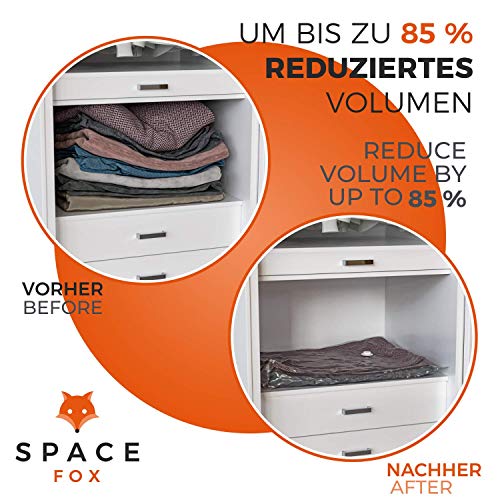 WE WILLEN DAT JE TEVREDEN BENT: Voor op reis of thuis in de kledingkast – ervaar een wonderlijke ruimtebesparing met de SpaceFox vacuümzak. Leg nu in je winkelmand om morgen al te testen.