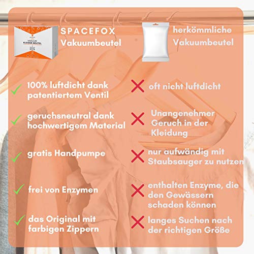 100% LUCHTDICHT: Vacuümzakken van SpaceFox bestaan uit scheurvast materiaal, beschikken over een verbeterd, krachtig ventiel en dubbele verzegeling. Zo blijft de lucht waar hij thuishoort – buiten!