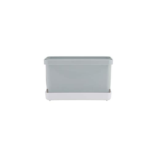 Voor een opgeruimde keuken: met de handige opbergmand voor afwashulp is de chaos aan de gootsteen een einde gekomen. De handige keukencaddy biedt met zijn brede beugel voldoende ruimte voor het ophangen van vochtige vaatdoeken en in het grote vak met een onderverdeling zijn afwasmiddel, borstel enz. goed gesorteerd ondergebracht. Door de gatenstructuur van de bodem loopt overtollig water er eenvoudig af. Deze verzamelt zich in de opvangbak van de spoelbak Caddy die met minder handgrepen kan worden verwijderd en eenvoudig kan worden uitgegoten. Bijzonder praktisch: op de voorgelagerde legplank kan de spons na het spoelen worden neergelegd. Het veergewicht van ca. 230 g is gemaakt van kunststof, gemakkelijk te reinigen en combineert de subtiele kleuren grijs en wit – een ideale opberghulp.