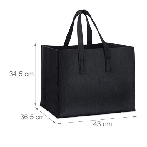 Relaxdays Brandhoutmand, 2 handgrepen, opvouwbaar, krantenhouder, vilten mand, haardhouttas “vilt”, zwart, 1 stuk