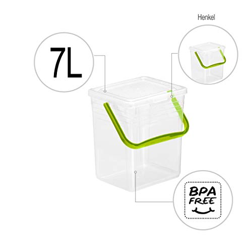 Rotho Powdy Opbergdoos 7l met deksel en handvat, Kunststof (PP) BPA-vrij, transparant/groen, 5kg/7l (24.0 x 20.0 x 25.5…