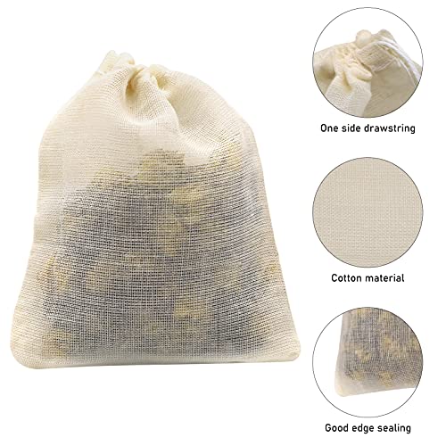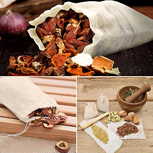 JOLIGAEA Katoenen mousseline zakjes, 50 stuks herbruikbare mesh zakken met trekkoord om te koken, weken geneeskrachtige…