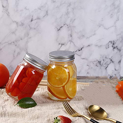 Glazen gewone mond metselaarpotten, 14oz glazen potten met zilveren metalen luchtdichte deksels voor maaltijdbereiding…