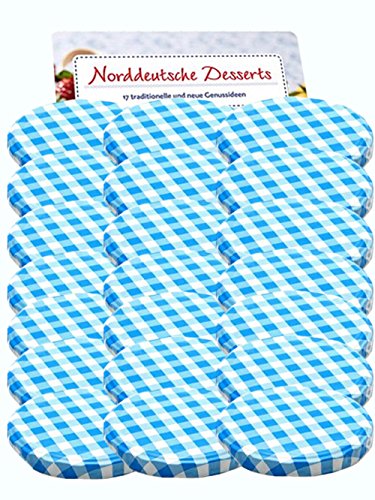 Set van 50 reservedeksels, twist-off-deksel voor weckglazen, To 82, blauw, geruit weckglas, geschikt voor 230, 350, 435…