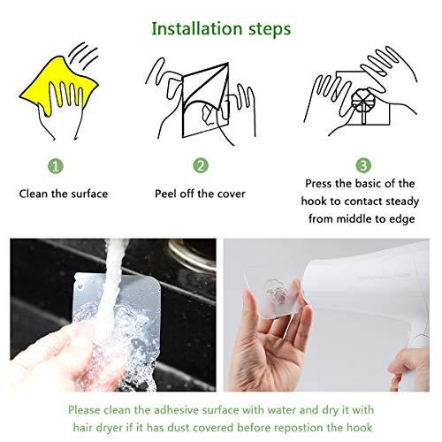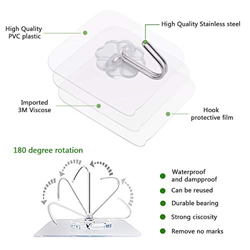 Sterke sterkte: zelfklevende hoogwaardige PVC-basis en superieure lijm (max. 10 kg), de haak kan 180 graden worden gedraaid en na horizontaal en verticaal worden gebruikt, maatdraagvermogen, stabiel en betrouwbaar