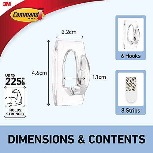 3M Command Haken transparant kunststof 6 Haak/8 S maatbanden, helder