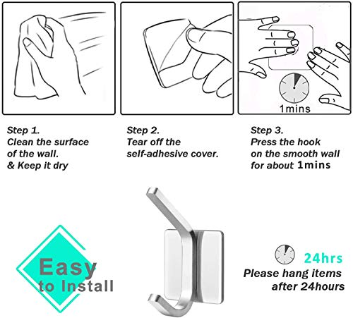 【Hoge kwaliteit】Zelfklevende haken zijn gemaakt van duurzaam SUS 304 roestvrij staal, massief metaal om de kwaliteit en levensduur te garanderen.