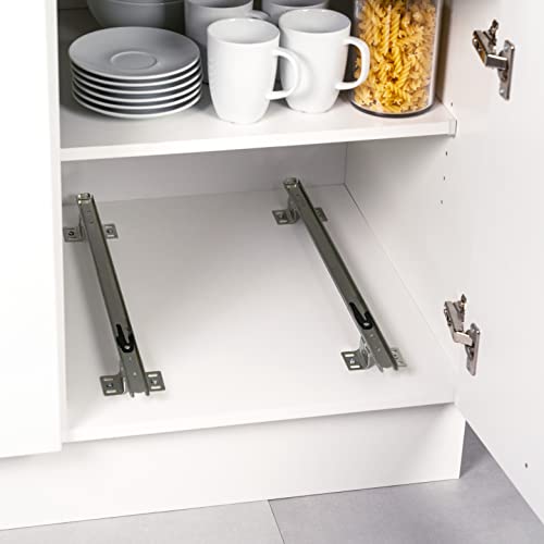 De Bremermann telescopische vloerladen uit de serie Teccop-systeem zijn uittrekbaar met 2 kogelgelagerde telescopische rails. // Maximale draaglast 15 kg // inclusief extra inlegplank, bevestigingsmateriaal en gedetailleerde montagehandleiding