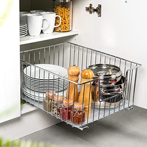 Voor meer orde en een beter gebruik van de kasten. // De mand maakt de zichtbaarheid ook op voorwerpen die achteraan zijn opgeborgen. Voedselvoorraad hoeft niet weg te worden gegooid, omdat houdbaarheid over het hoofd wordt gezien. // Met de uitneembare bodem slaan de voorwerpen stabiel zonder te kantelen of direct om te vallen.