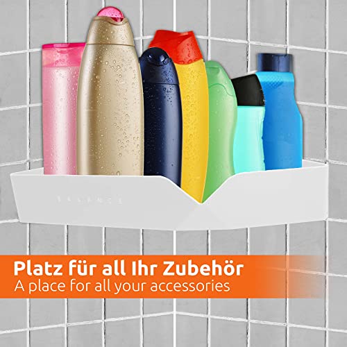 ECENCE 1x Hoekplank douche zelfklevend, doucherek van ABS-kunststof zonder boren, douchemandje voor shampoo, scheermesje, spons Wit
