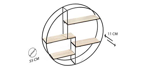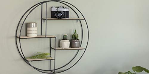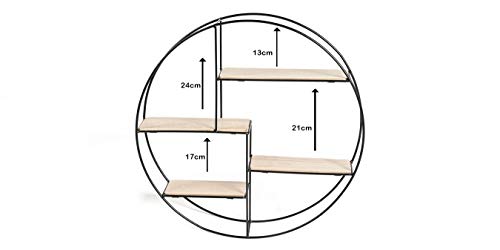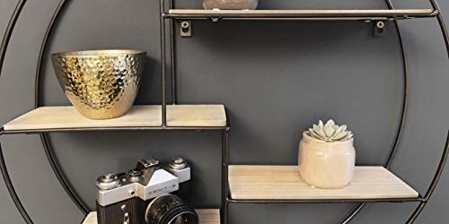 Metaal en houten wandrek: dit wandrek is gemaakt van stevig metaal en is voorzien van 4 houten plankjes. Je zult daarom lang kunnen genieten van dit multifunctionele rek! Het ronde opbergrek kan dankzij het simpele design in zowel een modern, industrieel als landelijk ontworpen kamer geplaatst worden.