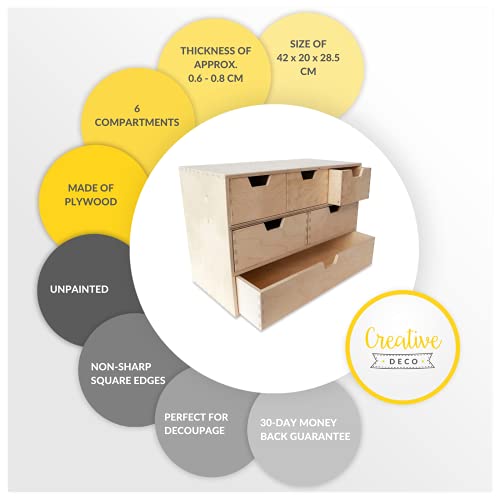 Creative Deco Mini Houten Kist met 6 Laden | Opbergkast | Onbeschilderd Multiplex | 42 x 20 x 28.5 cm | Perfect voor…
