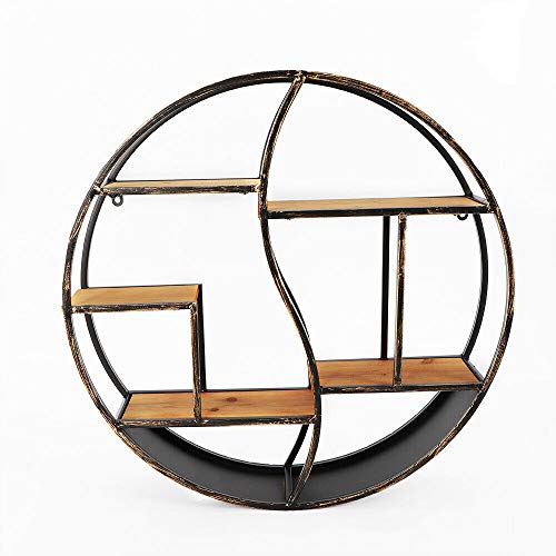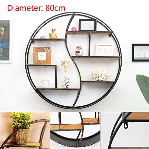 Fetcoi Metalen opbergrek opslag rek vintage ronde wandstandaard wandrek (80 cm)