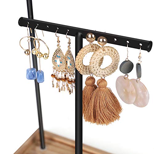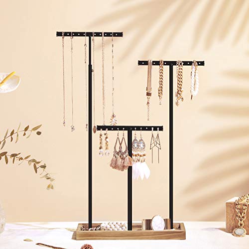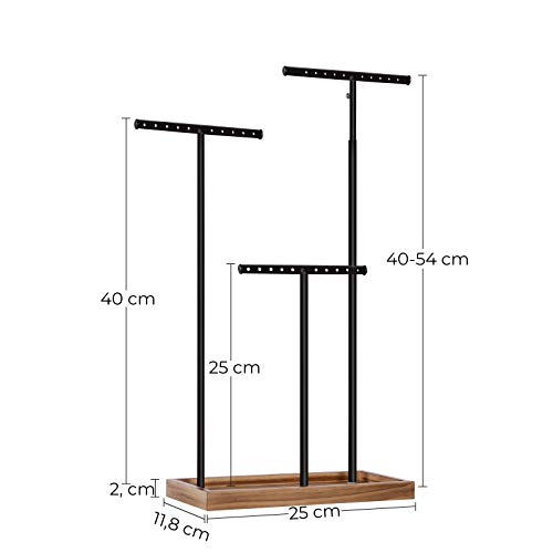 SONGMICS 2-in-1 sieradendisplaystandaard, sieradenrek, boom, 3 T-vormige metalen staven met gaten, opbergbak…