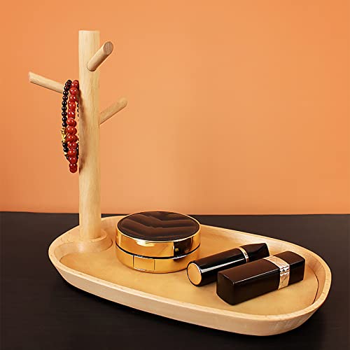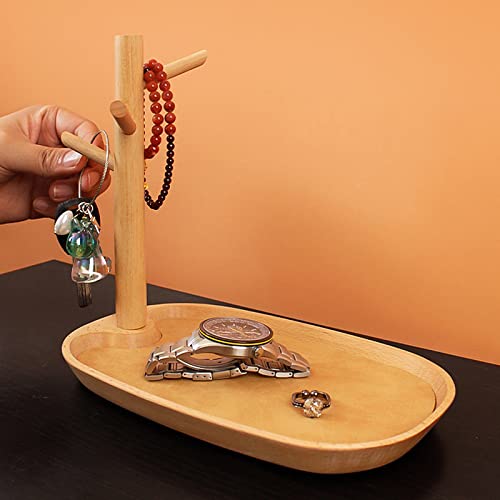 UUHUKP Sleutelschaal voor instaptafel, massief houten sieradenlade, kleine houten ringhouder, vangbak met 3 standaard…